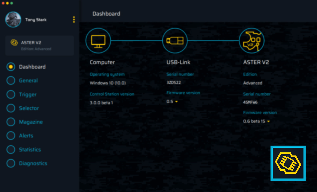 Update the firmware and adjust the settings of your ETU at home, using the USB-Link and the GATE Control Station app. It is compatible with all firmware editions of ASTER and TITAN with the GBU update.